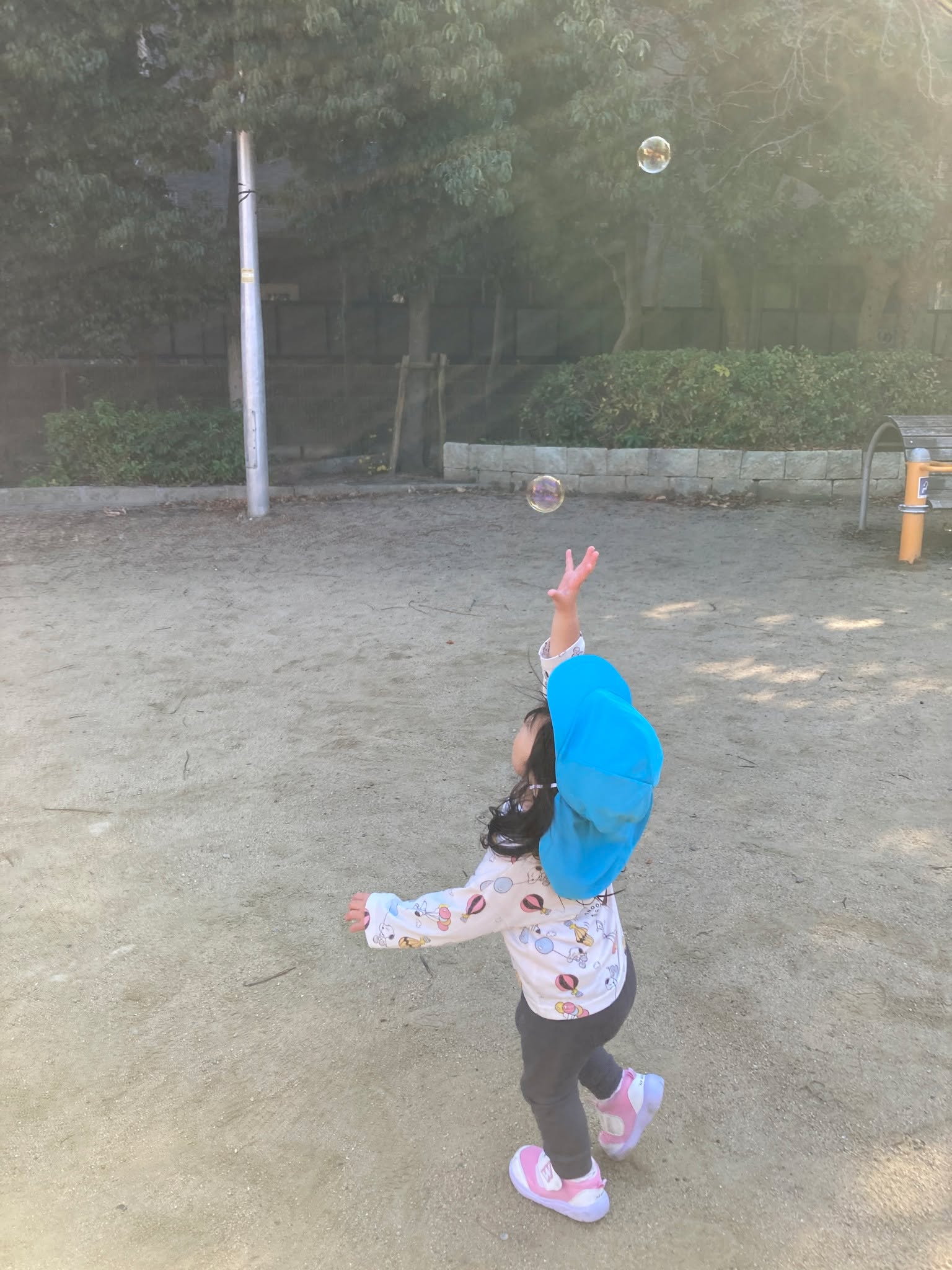 公園ではシャボン玉を飛ばしたり、お友だちと追いかけっこをしたりして元気いっぱいに過ごしました。